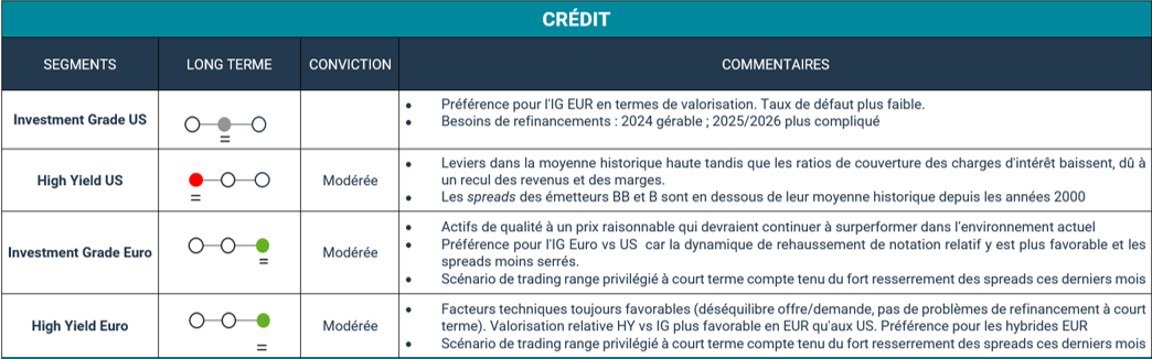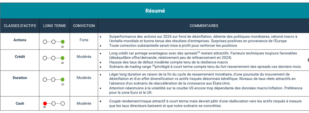 Avril confirme notre scénario macroéconomique favorable, comme le démontrent les indicateurs avancés et réels, notamment en Europe. Réserve Fédérale et BCE12 ont clarifié leurs politiques pour les prochains mois et ne devraient pas adopter le même tempo pour leurs baisses de taux.