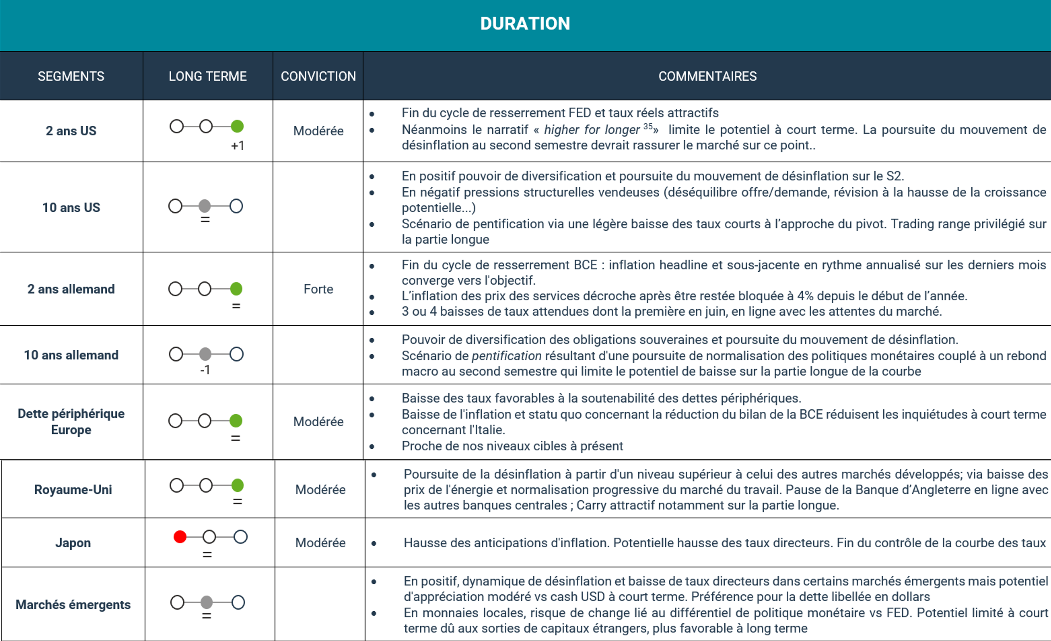 Cette conjugaison de facteurs va permettre à la BCE d’amorcer avec plus de sérénité sa baisse de taux. Un repli de 25 points19 de base au mois de juin semble quasiment acquis.
