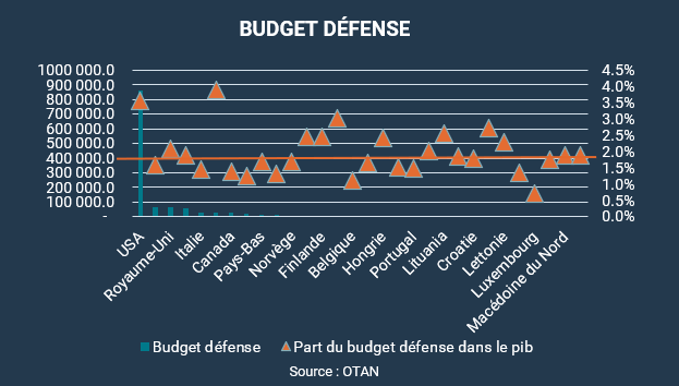 Une thèse simple se diffuse depuis longtemps : grâce à l’OTAN, l’Europe aurait allégé ses budgets de défense pour de facto les consacrer à son modèle social. Après tout, la chute de l’URSS avait éloigné la menace la plus immédiate pesant sur le vieux continent, tandis que les bases militaires américaines en assuraient la sécurité. Vision caricaturale, que partagent des conseillers de M. Trump, mais que les budgets de divers pays européens ne démentent pas vraiment : sur les 32 membres de l’Alliance, seuls onze, dont les Etats-Unis, consacrent au moins 2 %20 de leur PIB à la défense, seuil que les états s’engagèrent pourtant, en 2014, à respecter.