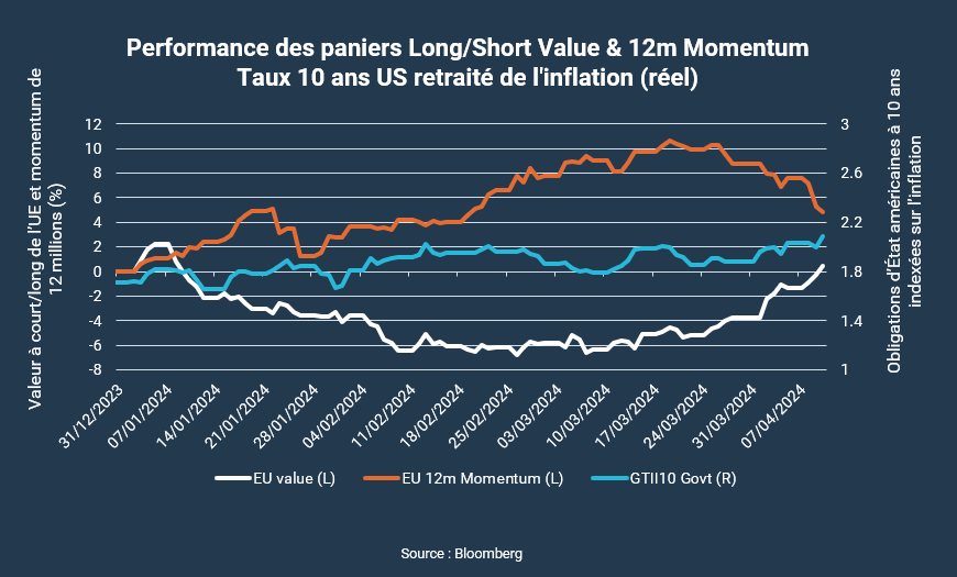 Toutefois, un fait notable a surgi en mars : un début de rotation dans les allocations, en faveur des actions européennes ou du compartiment style value5, largement décoté et sous-détenu. Les prises de profits sur les méga-capitalisations croissance commencent à émerger. Cela paraît cohérent au vu du scénario d’une croissance mondiale au-dessus des attentes à même de se diffuser aux différents pans de l’économie. Le marché se met en quête d’un nouveau leadership pour nourrir la hausse ou maintenir les niveaux actuels. Chacun doit garder à l’esprit que les marchés restent tributaires des résultats des méga-caps technologiques américaines : elles pèsent très lourd dans les indices américains et mondiaux et il convient de prêter attention aux répercussions en cas de résultats décevants de leur part.