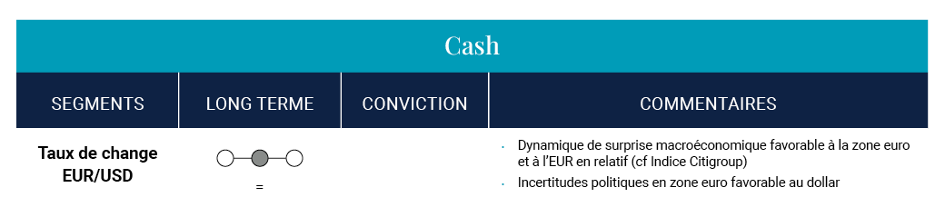 En termes de style, la gestion momentum a largement surperformé, grâce à la technologie et plus généralement aux sociétés « mega cap growth » à fortes marges, forte croissance et faible endettement, plus immunes à cet environnement de taux élevé. Les thématiques qualité/ défensives ont pu rebondir en fin de semestre sur fonds de hausse de l’aversion pour le risque mais n’ont pas comblé le retard pris depuis le début de l’année. Au sein du segment value, seules les banques ont réellement performé et le début d’année a été compliqué pour les small caps. Au global, les valeurs cycliques ont surperformé les défensives, mais certains segments commencent à apparaître moins attractifs en termes de valorisation au vu de la dynamique macro, ce qui nous pousse à davantage de neutralité en ce début de second semestre.