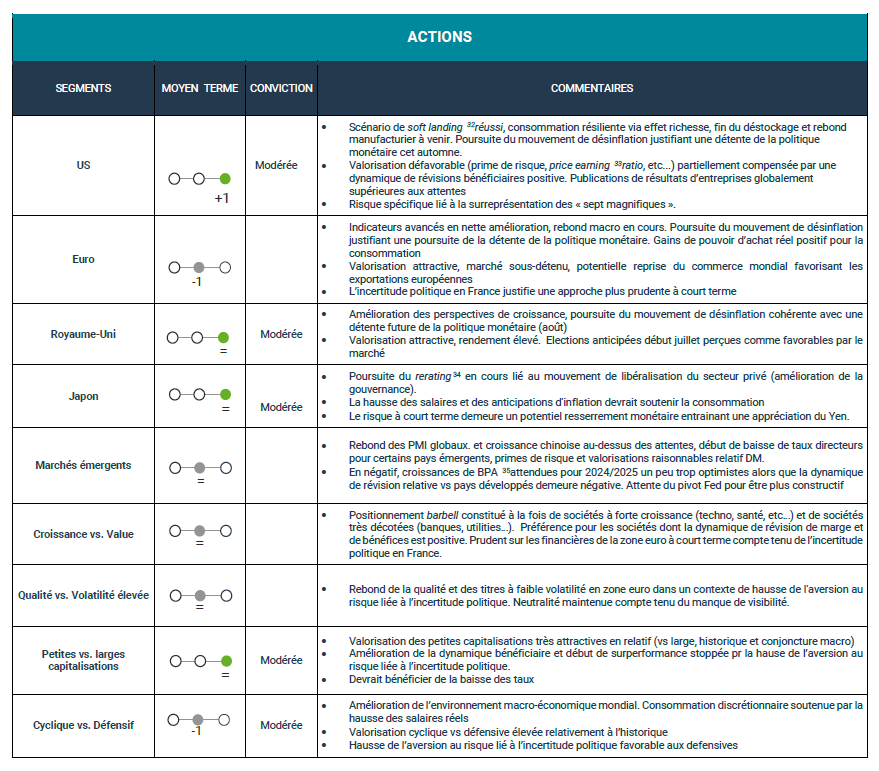 Alors que le premier semestre touche à sa fin, le scénario de soft landing de l’économie américaine nous semble toujours d’actualité, mais entre dans une phase moins idyllique désormais, avec des classes populaires hélas, et logiquement, affectées par la résilience d’une inflation certes en retrait, mais toujours élevée par rapport aux niveaux des années 2000 et 2010. La volatilité devrait augmenter sur les marchés, mais il reste des sous-tendances sur lesquelles capter de la performance. En bref, si la lecture du second semestre nous paraissait plus aisée quant aux évolutions économiques, les contextes politiques et géopolitiques pour leur part nous font pénétrer en terres inconnues, où anticiper le niveau de risques constitue un exercice ardu.