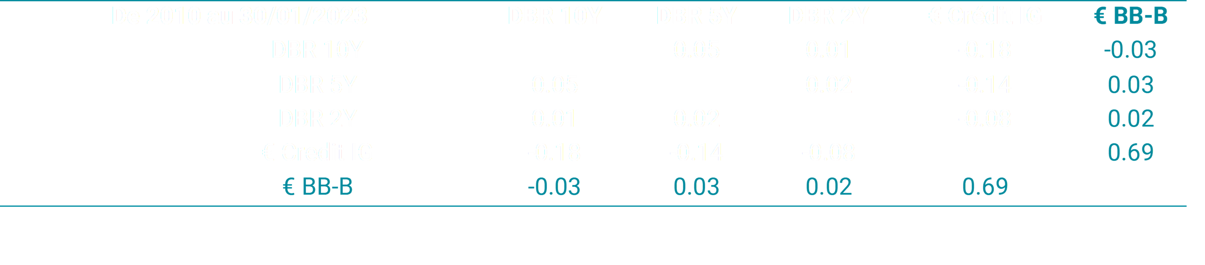 Sources : Bloomberg au 30/01/23, outil matrice de corrélation, « CORR », Mirova