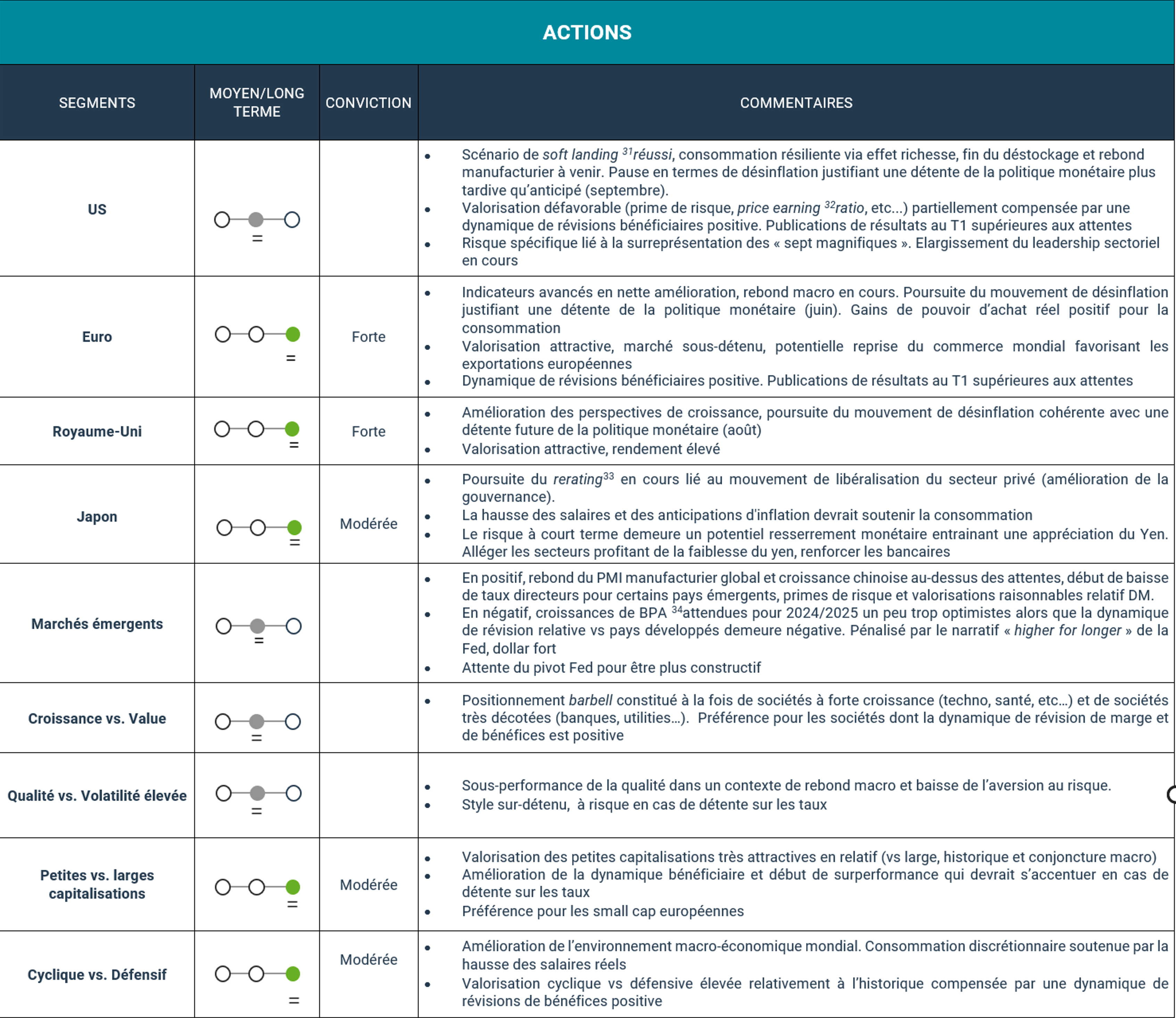 Avril confirme notre scénario macroéconomique favorable, comme le démontrent les indicateurs avancés et réels, notamment en Europe. Réserve Fédérale et BCE12 ont clarifié leurs politiques pour les prochains mois et ne devraient pas adopter le même tempo pour leurs baisses de taux.